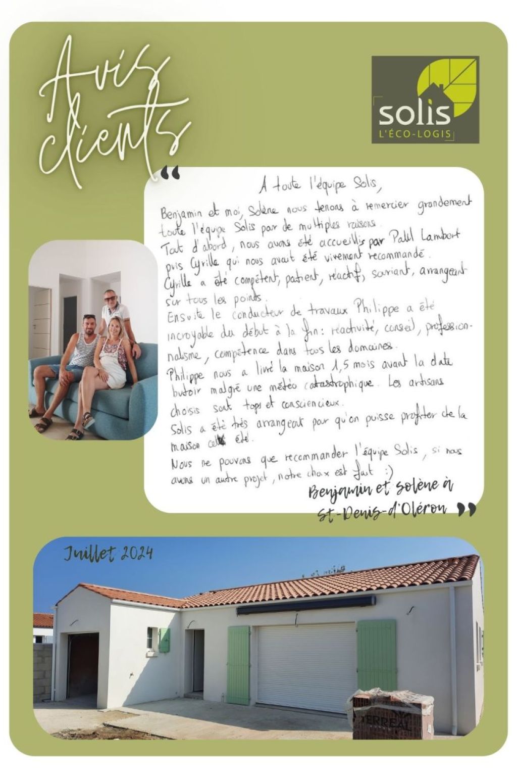 Nous ne pouvons que recommander l’équipe SOLIS, si nous avons un autre projet, notre choix est fait :)