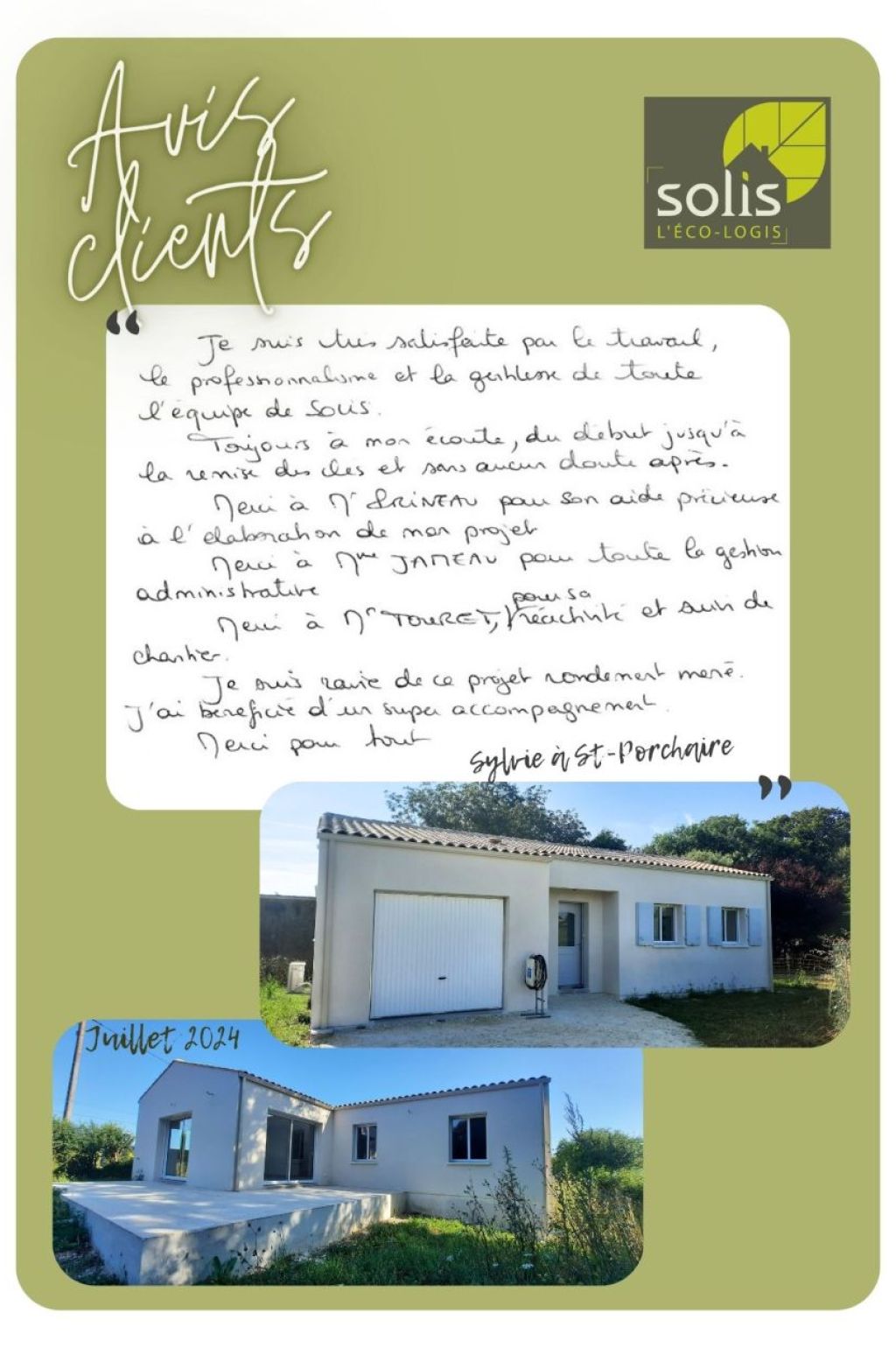 Je suis très satisfaite par le travail, le professionnalisme et la gentillesse de toute l'équipe de Solis.